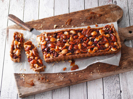 Goldgelbe Backfreuden für den Herbst: Karamellisierte Kuchen, selbst gebacken mit Früchten der Saison und regionalem Bio-Zucker