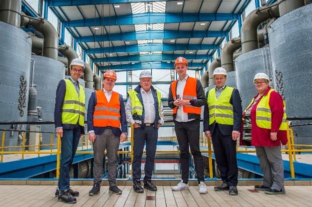 v.l.n.r.: Dr. Albrecht Schaper (Head of Environment, Permits & Licenses), Christian Kionka (Head of Communications & Public Affairs), MdL Miriam Staudte, MdB Dr. Julia Verlinden, Pascal Leddin (Landtags-Kandidat), Dr. Mathias Böker (Head of Factory Uelzen), Alexander Sick (Public Affairs)