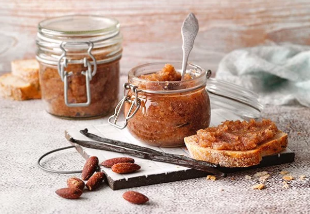 Als Aufstrich für Brot und Brötchen eignet sich eine salzige Mandelcreme mit Vanille: Rezept für Fein salzige Mandelcreme mit Vanille (sweet-family.de).