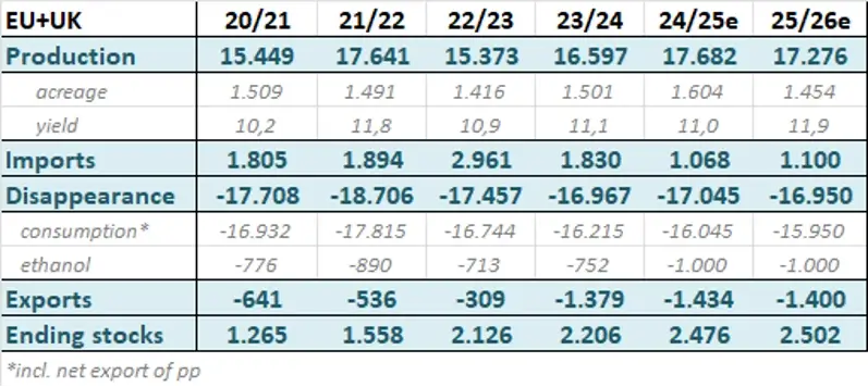 The European sugar sector continues to face structural challenges: declining consumption, low prices, rising stocks, and ongoing consolidation. The 2025/2026 campaign is now largely completed across Europe, with yields revised upward and even reaching record levels in some areas. Despite a 10% reduction in planted area, final EU production is expected to decline by only around 2.5%. Similar trends were seen in Ukraine, Russia, and Serbia, resulting in overall strong production in the Northern Hemisphere.