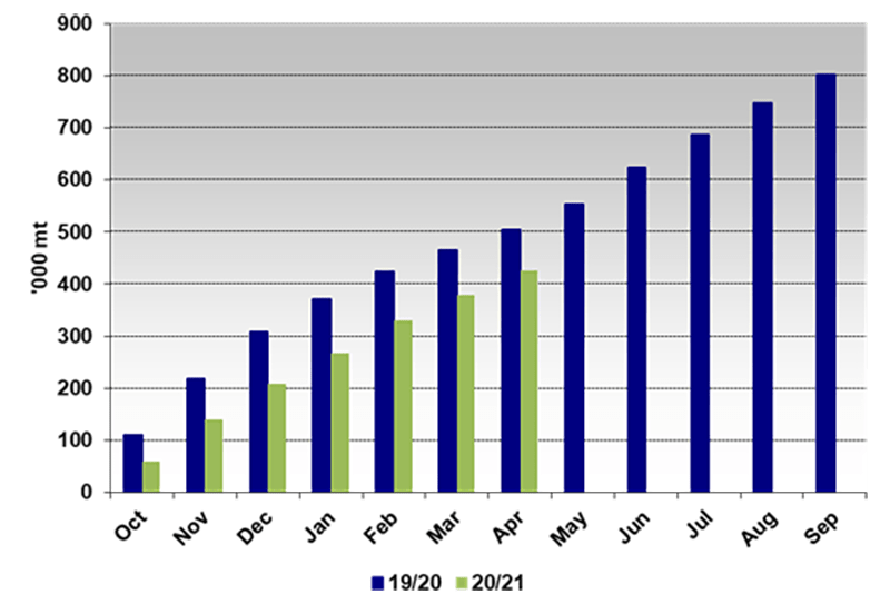 We think the market is undersupplied until start of new campaign; any availability depends on the need and readiness of market participants to increase imports and accept the level of import parity. By early May, less than 800 kto had arrived into the EU+UK, which is almost 300 kto less than last year at the same point in time.