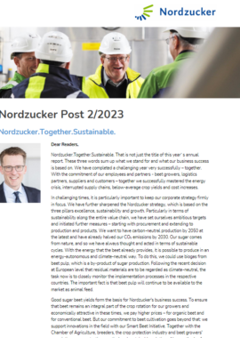 I very much hope you enjoy reading this edition of the Nordzucker Post with further news from the company. I also look forward to welcoming our shareholders in person again this year at the joint Annual General Meetings of Nordzucker AG and Nordzucker Holding AG on 20 July 2022 in the Volkswagen Halle in Braunschweig.