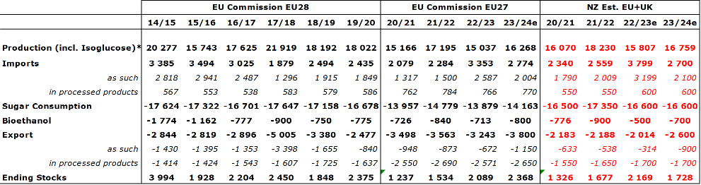 European Sugar Balance as per EU Commission / Nordzucker own data: