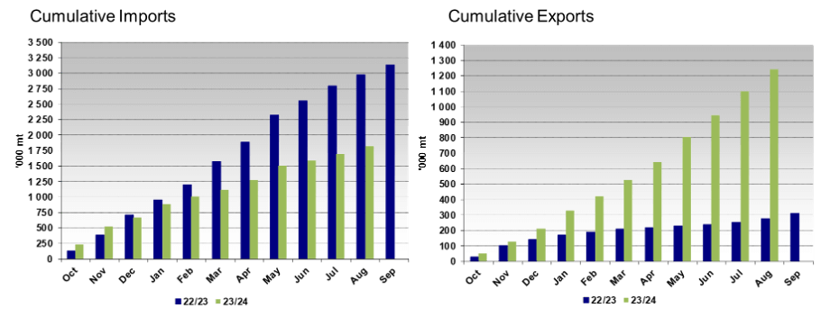 Reported stocks in EU27 continues to deteriorate faster than last year as exports continues at a high pace, supported by a healthy world market price. Imports on the other hand is rather limited for the same reason as domestic EU prices do not support refining activity, not even if raw sugar could be imported without import duty or preferential premium. On trade flows, we expect more of the same throughout the new sugar marketing year; export is set to reach approximately 1.6 million tons while imports will reach 1.2 million tons or even lower depending on the final production.